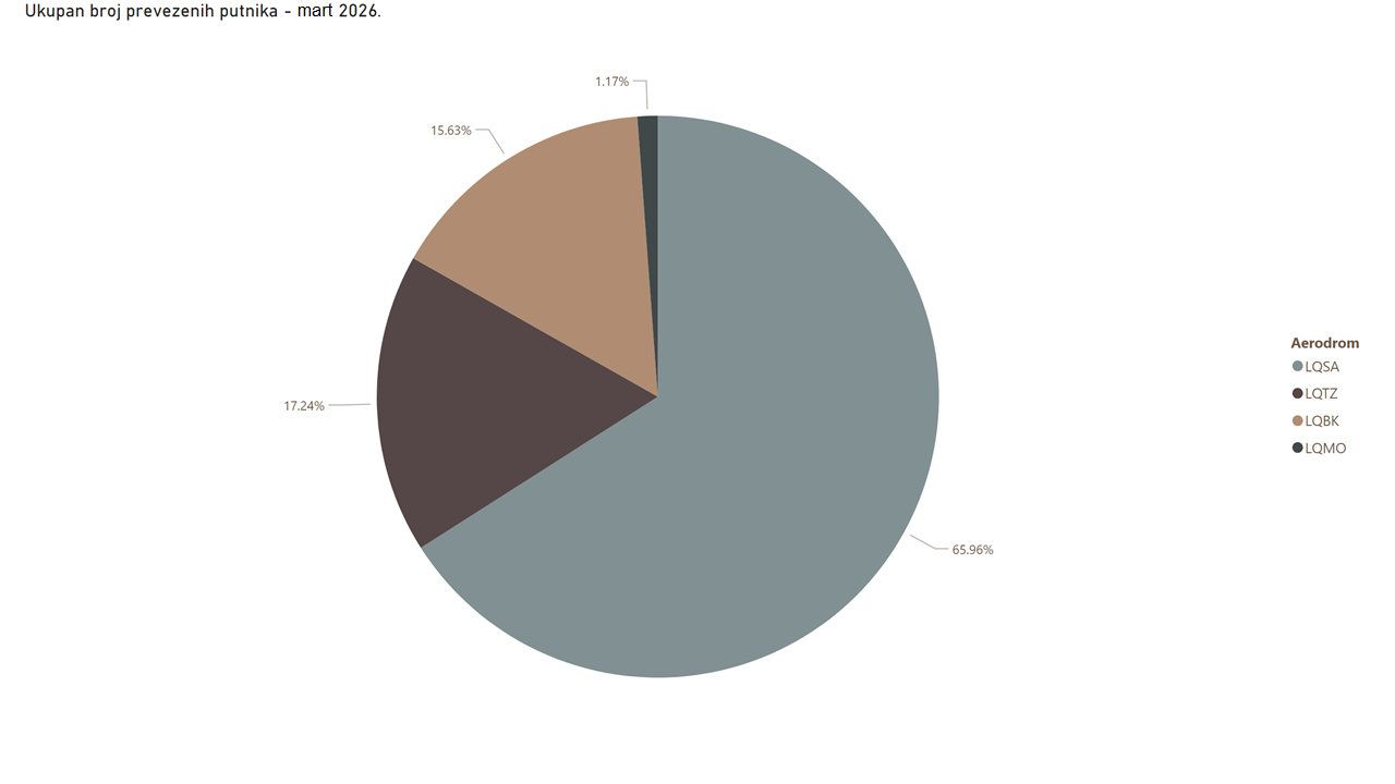 Podaci o prometu aerodroma u BiH za mart 2026. godine