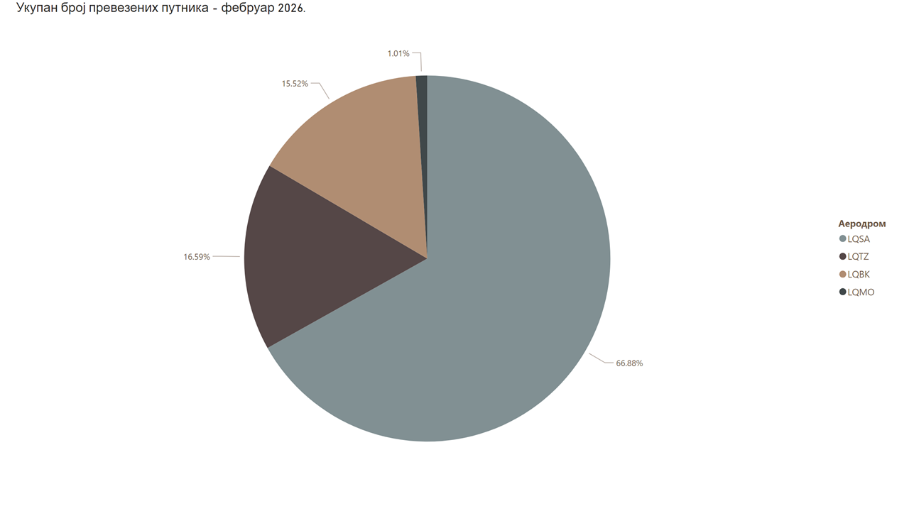 Подаци о промету аеродрома у БиХ за фебруар 2026. године