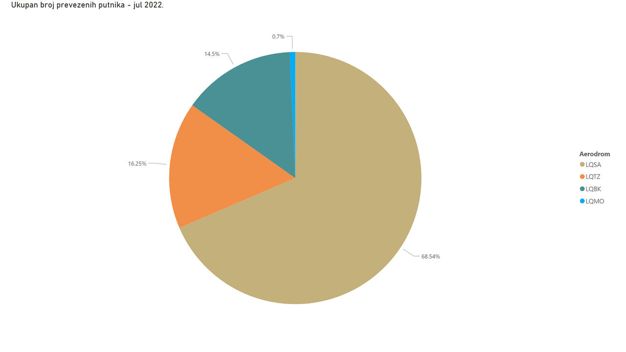 Podaci o prometu aerodroma u BiH za juli 2022. godine