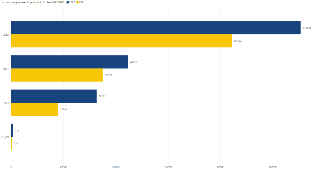 Podaci o prometu aerodroma u BiH za oktobar 2022. godine