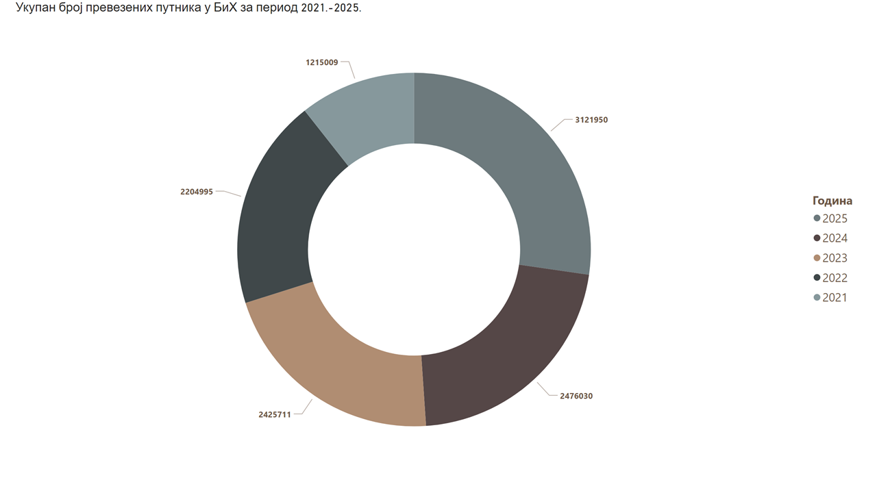Подаци о промету аеродрома у БиХ за 2025. годину